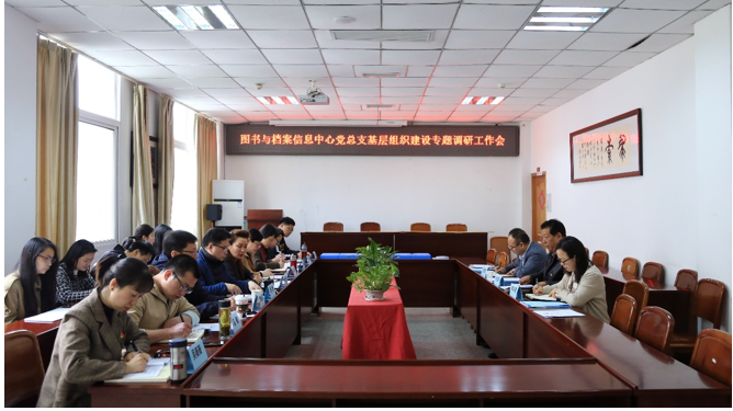 2021年4月16日上午9:00,图书与档案信息中心党总支在狮子山校区图书馆三楼会议室召开基层组织建设专题调研座谈会。学校基层组织建设调研工作组第一组长班运翔,成员王晓辉、李林霞,图档中心班子成员、党总支委员、党支部书记以及党员代表共20人参加会议。会议由中心党总支书记傅桃主持。
