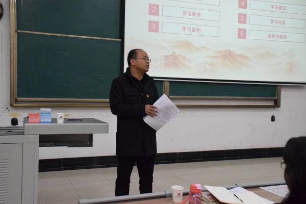 2021年3月25日下午,马克思主义学院在7教114召开党史学习教育动员大会暨党史学习专题党课,学习贯彻习近平总书记在全国党史学习教育动员大会上的重要讲话精神,贯彻落实学校党委关于党史学习教育的决策部署,安排部署学院党史学习教育工作。学院全体教职工和学生党员参加会议,学院党委书记王泽兵作动员讲话,学院院长陈驰做专题讲座,学院党委副书记、纪委书记杨晓勇主持会议。