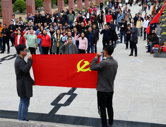 当天,学院教职工首先来到泸定桥开展现场教学活动,计算机科学学院教工一支部、二支部、三支部分别召开了主题党日活动。泸定桥头,滔滔江水依旧,铁索铁链依旧,鲜红的旗帜依旧,大家通过重走泸定桥的方式重温了86年前红军战士不惧强敌、不怕牺牲的大无畏精神。接着,全院教职工移步到红军飞夺泸定桥纪念馆广场,计算机科学学院党委书记易禾向老师们阐述了中国共产党人的初心和使命,要求大家要把党的光荣传统、优良作风发扬光大,立足工作实际,把这次党史学习的收获和实际工作结合起来,学以致用,推动学校事业发展。在易禾的带领下,大家面对党旗,庄严宣誓,重温入党誓词。