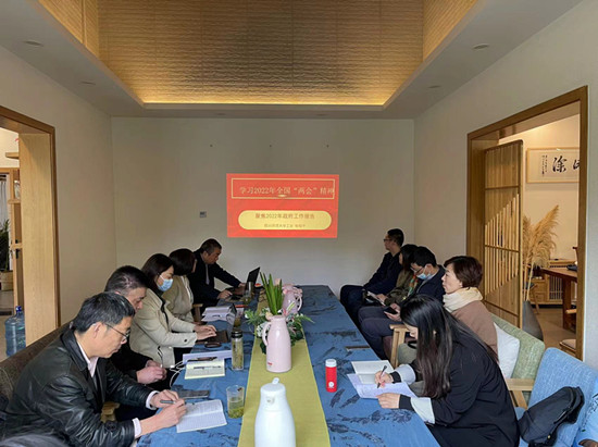 省教科文党支部、四川师大工会党支部党员首先参观考察好日子社区文创建设,实地学习社区职工文化阵地建设的先进理念后。随即在社区文创室进行了理论学习。学习会由校工会党支部书记杨渝君主持,校工会党支部党员张绍平宣讲了2022年全国两会精神,重点聚焦政府工作报告中关于经济、民生的部分进行了讲解。