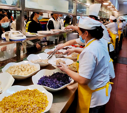 高校餐饮具有服务对象规模大、品种需求多、就餐时间集中等特点,师生们要求菜品丰富、味型多样、营养健康。饮食保障部坚持以满足师生多元需求为行动指南,紧扣社会餐饮发展变化脉搏,解放思想,积极探索,不断研发新菜品,相继推出了轻食系列、鸡排饭、绵阳米粉、金汤鱼片等广受师生好评的特色菜肴,不断满足广大师生对餐饮服务新需求,提高师生的归属感和幸福感。