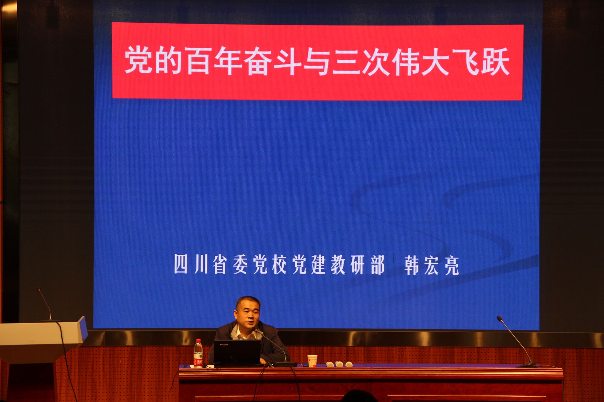 2021年5月6日下午,四川师范大学教育科学学院党史学习教育活动在狮子山校区第七教学楼B区105室举行。本次学习邀请了四川省委党校党建教研部副主任、四川省党的建设研究智库首席专家韩宏亮教授作主题为“党的百年奋斗与三次伟大飞跃”的专题党课讲解,学院全体党员教师和部分学生党员代表参加学习,学院普通教职工列席会议。