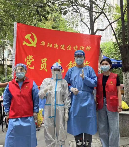 学生团员及群众紧随其后。本科第三党支部入党积极分子张贵成在成都成华区领地海纳时代小区做疫情防控的志愿者,穿着防护服,坚守在封控小区内高风险楼栋门口。替被隔离在家中的住户们送物资,登记信息,提供便利。2020级学生团员杨佳欣在疫情防控中担任志愿者为滞留旅客配送物质,送爱心送温暖。2020级学生方友权担任防疫志愿者参与卡点检查,防疫宣讲,社区人员体温检测等工作。