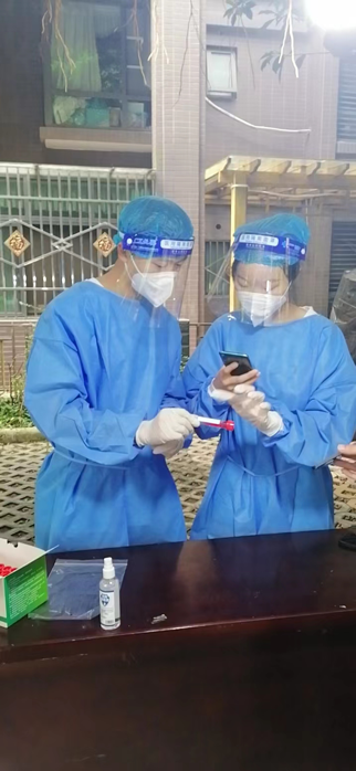 学生党员干部冲锋在前。今年暑假以来我院2019级学生党员潘雅雯同学已连续16天参与抗疫志愿服务,在四川天府新区华阳街道伏龙社区、兴隆街道鹿溪河畔小区等疫情防控风险区,为超过5万人次的居民录入核酸检测信息。2019级学生党员干部沈昊頔同学,在此次防控工作中,与其他志愿者一起维持秩序,引导居民有序做核酸检测,检查社区人员出入安全,拍照记录工作人员的每个瞬间。本科第一党支部党员申钰婷同学作为志愿者,参与了检查行程码、扫描健康码分发物资、上门为一些不方便走动的老人进行核酸检测 、帮有需要的居民购买必需品。