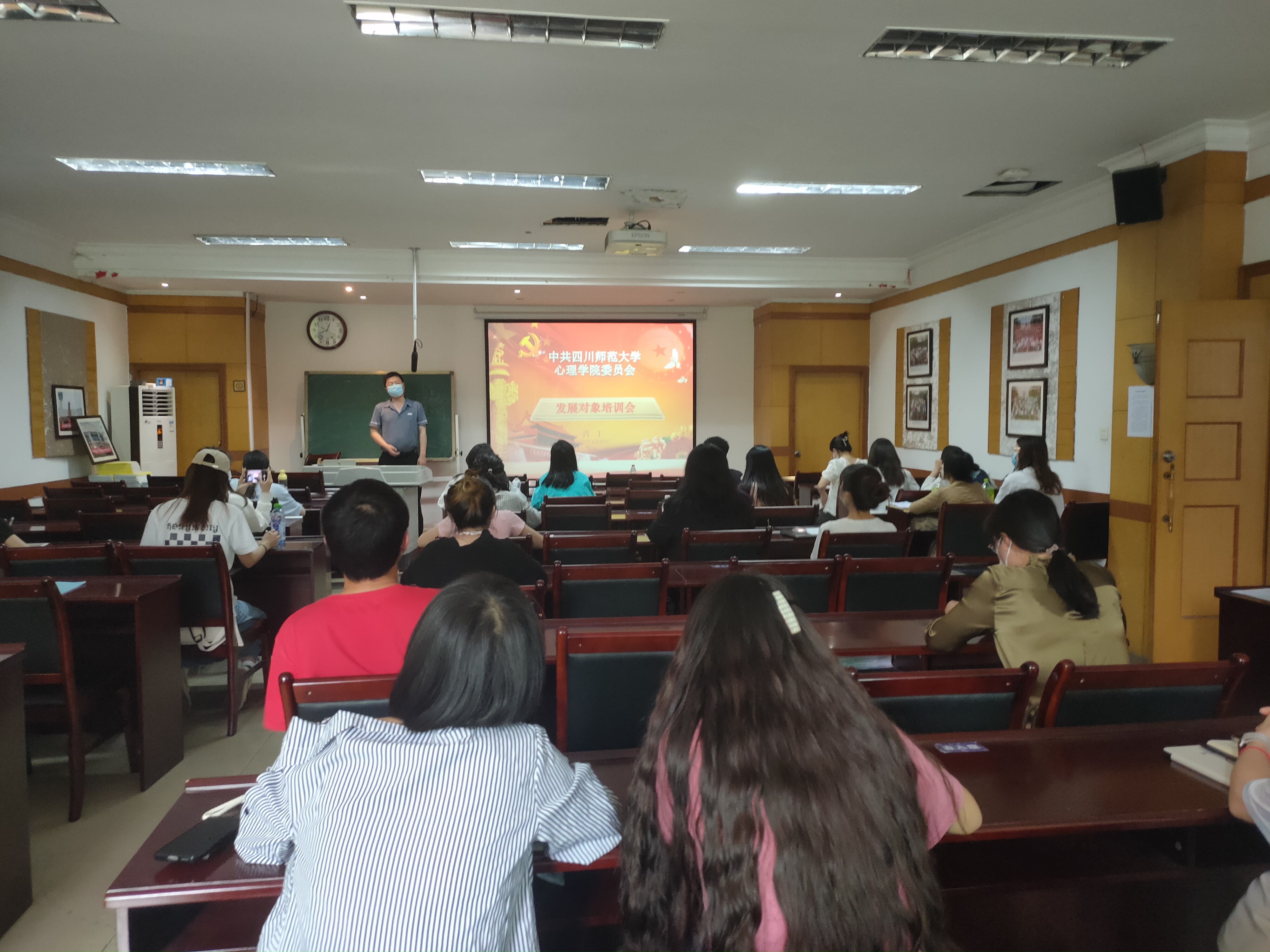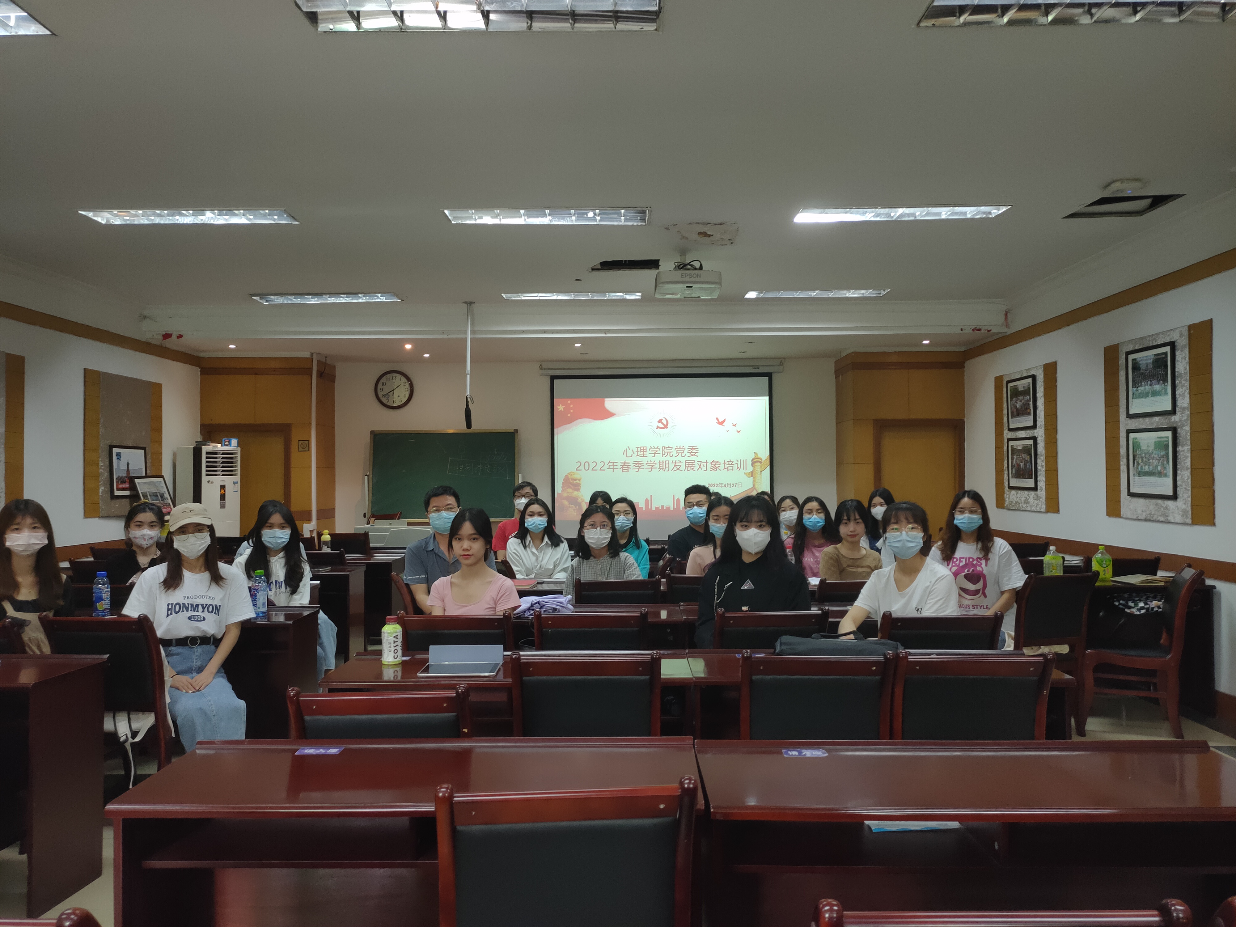 2022年4月27日12:30,心理学院党委在新松苑201教室开展了2022年春季发展对象集中培训活动。学院党委书记肖柯、学院党委组织员肖丁出席,学院2022年春季发展对象参加本次培训。本次培训由学院本科生党支部余盼同志主持。