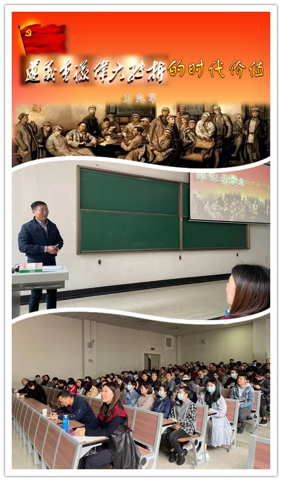 王兆军从遵义会议召开的历史背景、遵义会议伟大转折的历史意义和遵义会议精神的时代价值三个方面作专题报告。报告阐述了遵义会议在中国革命最危急的关头挽救了党,挽救了红军,挽救了中国革命,是中国共产党历史上生死攸关的转折点。报告会主题鲜明、视野开阔、内容详实、深入浅出,以详实的历史资料引导党员重温党波澜壮阔的奋斗史,进一步激发全体党员同志要做到学史明理、学史增信、学史崇德、学史力行。通过党史学习进一步坚定信念,坚持中国共产党的核心领导,通过党史学习提高党员思想品德,提高党性修养,提高我们的思维能力,以此指导我们的工作和生活。