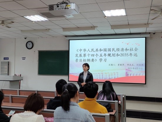 2021年4月19日,心理学院研究生第二党支部开展了以学习《中华人民共和国国民经济和社会发展第十四个五年规划和2035年远景目标纲要》为主题的专题组织生活会。本次会议由第二党支部书记舒情同志主持,支部全体党员参加。