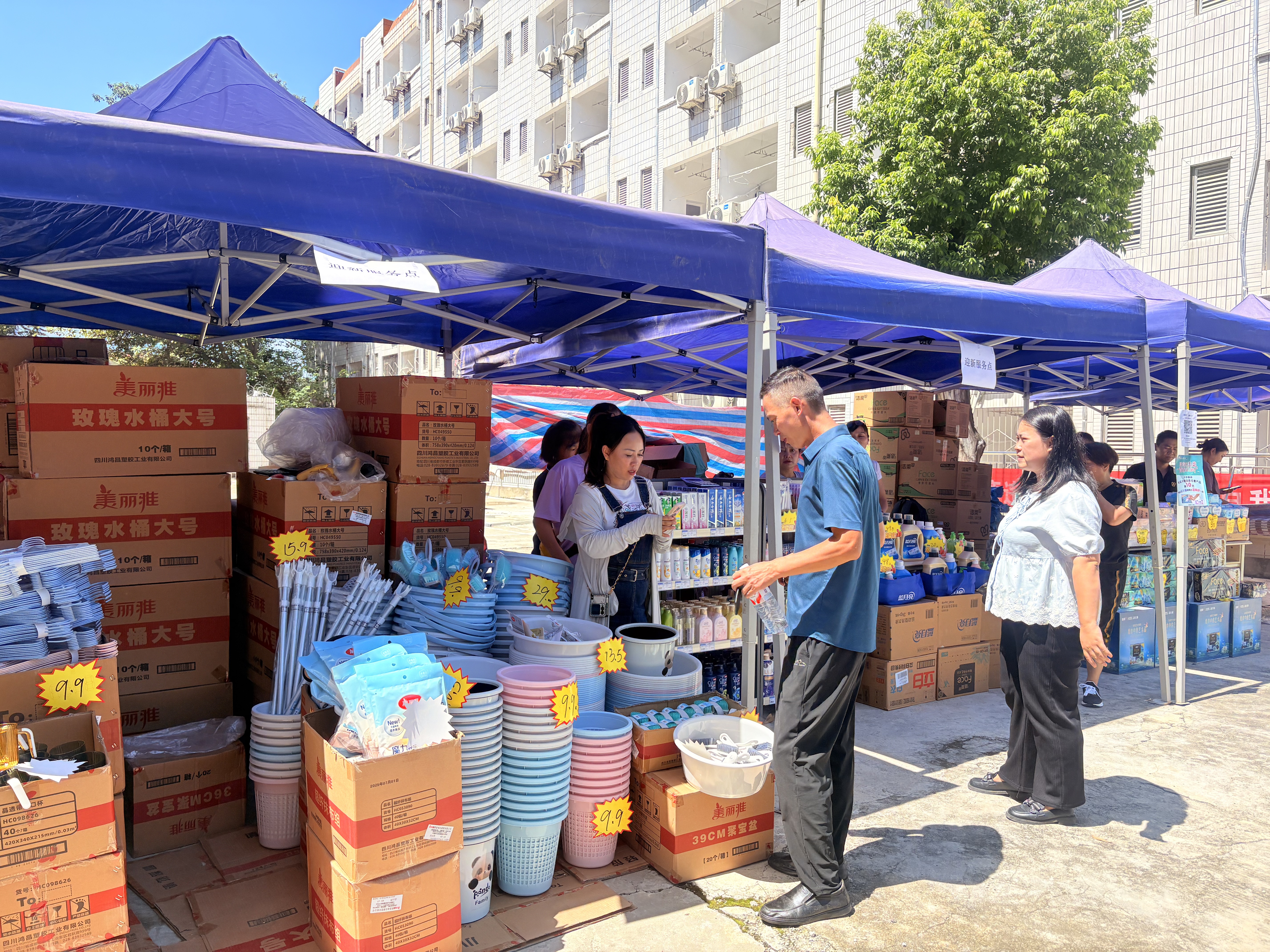9月9日新生报到当天,后勤各支部迅速行动,在校园各处设立“迎新党员志愿服务点”,将党建优势转化为服务实效。机关党支部的党员带头深入到食堂、公寓和品悦超市服务驿站等迎新一线,积极为同学们服务。能源通讯支部党员驻守3个咨询点,手把手指导新生校园报修与充值操作;公寓服务支部党员全天候值守,协助800余名新生办理入住手续,走访2000余间寝室了解入住需求;饮食保障党支部精心准备免费绿豆汤,为新生与家长驱散暑气;校医院党支部设点提供解暑茶与防暑药品,筑牢健康屏障;接待文创信息服务党支部贴心服务近百人次,助力留学生快速融入校园生活。党员们忙碌的身影、耐心的服务,成为校园里最温暖的风景线,赢得了新生与家长的一致好评。