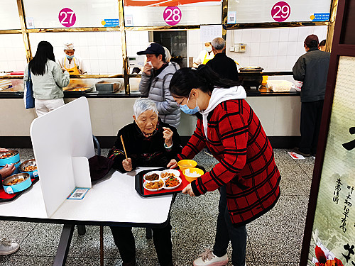 80多岁的王忠林老人步履蹒跚地朝着助餐点走来准备排队,值班党员黄雪梅立马上前搀扶老人就坐,并将热气腾腾的饭菜送到老人桌上,老人热情地握住她的手说:“现在的党员真的是在为群众办实事、做好事,这个助餐点和为我们服务的党员,真是暖到我们的心坎里了”。