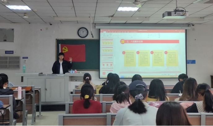 首先,宣传委员晁雨楠同志带领大家学习了党章,她从第五章第三十五条和三十六条切入,向大家详细讲解了党如何选拔培养干部,党的各级干部应该具备哪些基本条件。