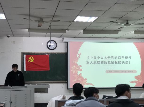 最后,支部书记郭一祎同志就此次分享作总结,党的十九届六中全会是在我们党百年华诞的重要时刻,在“两个一百年”奋斗目标历史交汇的关键节点上召开的一次重要会议。我们要提高站位,把思想和行动统一到六中全会精神上来,紧密团结在习近平同志为核心的党中央周围,找准目标精准发力,扎实做好日常工作,建设一支高质量的研究生党支部。