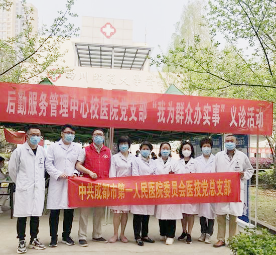 3月16日、17日,在校工会及后勤党委的积极支持下,后勤校医院党支部联合成都市第一人民医院医技党总支部,在校医院花园里举行了为期两天的“学雷锋”义诊和健康宣教活动。校医院党支部书记副院长蒲晓明、院长陈雪莲、副院长杨波组织校医院党员业务骨干,与成都市第一人民医院高中森老师带队的妇科、骨科、中医理疗科、胸外及甲乳外科、心血管内科等专家团队一起为师生义诊服务。