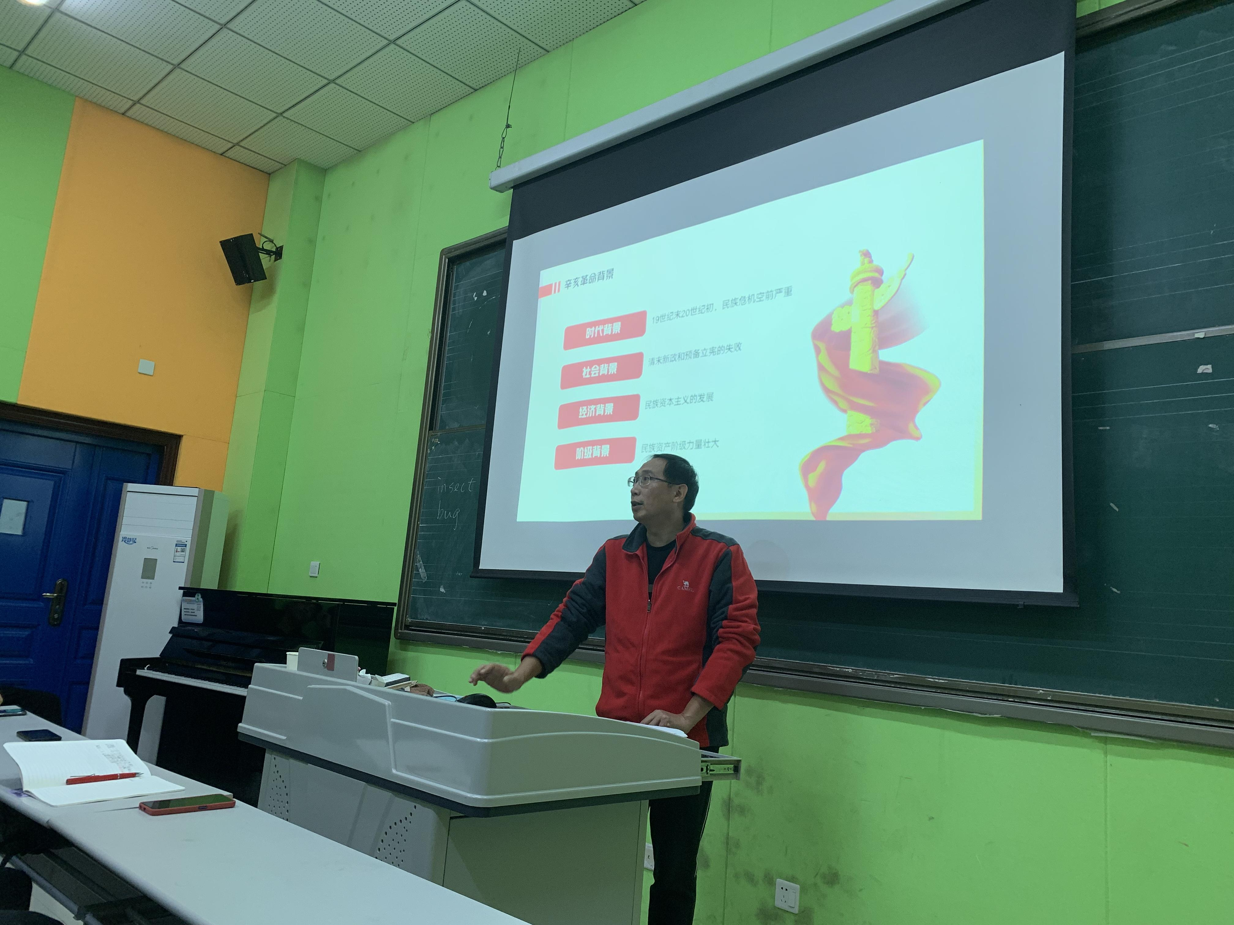 其次,根据2021年10月9日习近平总书记在“纪念辛亥革命110周年大会上”发表的重要讲话精神,杜美阳书记分别从辛亥革命的历史背景以及习近平总书记的重要讲话这两个方面进行了领学,让到场的同学们进一步了解到了辛亥革命带来的意义。