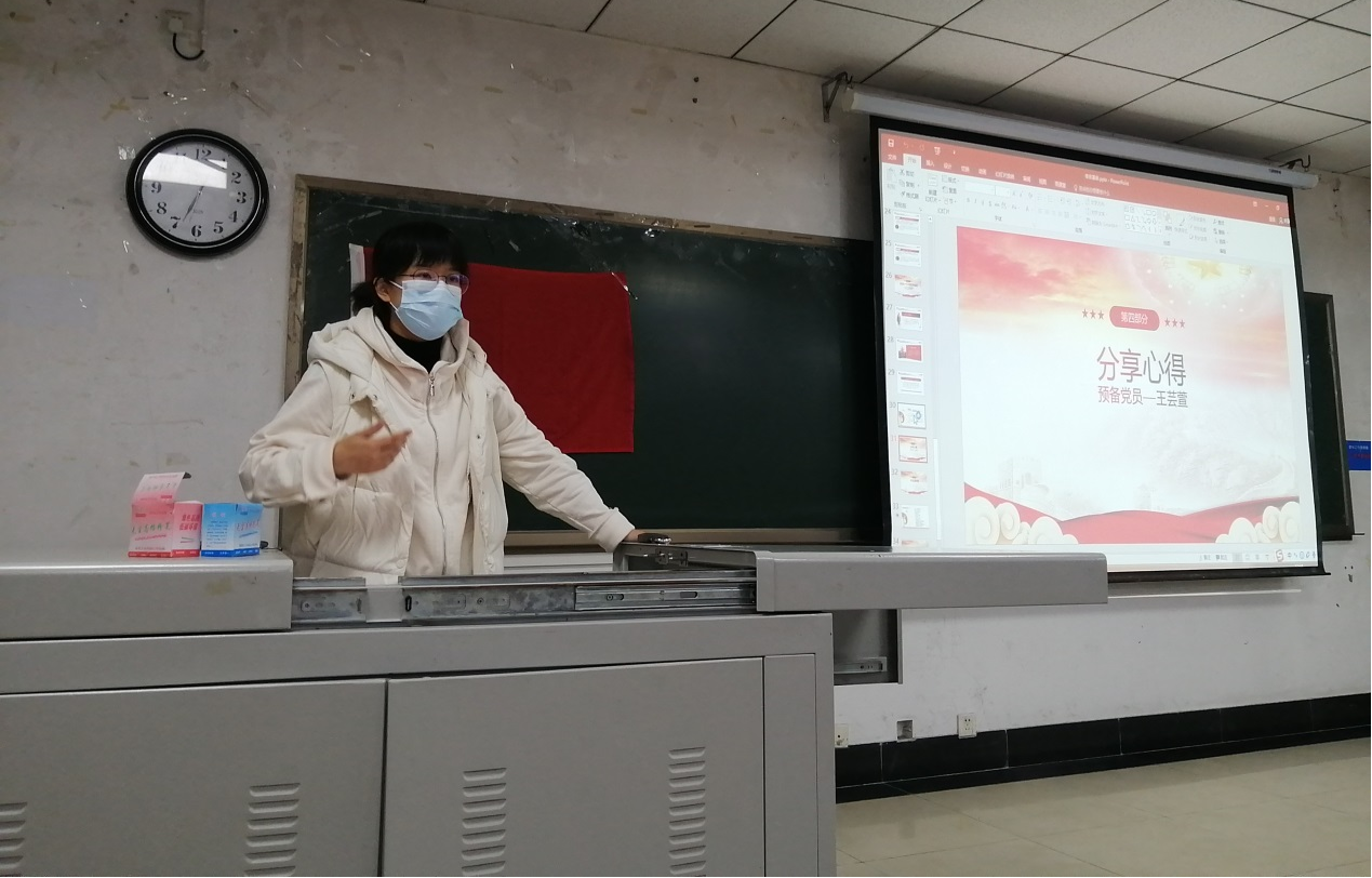 首先,宣传委员晁雨楠同志带领大家学习了党章,她从第五章第三十六条切入,向大家详细讲解了党的各级领导干部必须信念坚定、为民服务、勤政务实、敢于担当、清正廉洁,模范地履行党章所规定的党员的各项义务。