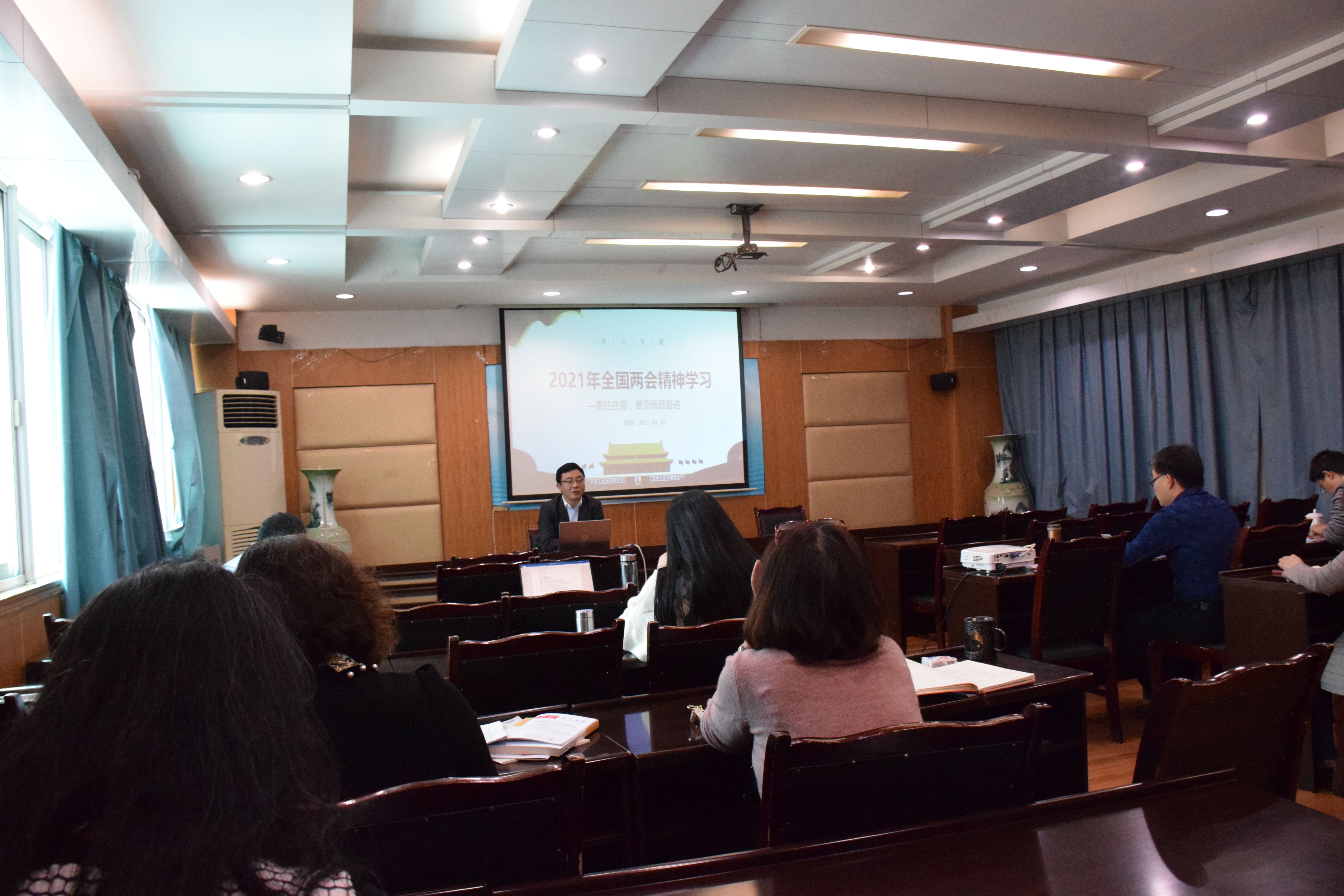 2021年4月26日上午,马克思主义学院召开党委理论学习中心组会议,就深入学习贯彻2021年全国“两会”精神进行专题学习研讨。学院党委中心组成员参加了学习,教工二支部书记饶静安副教授领学,学院党委书记王泽兵主持学习会。