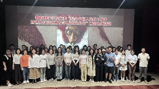 在纪念中国人民抗日战争暨世界反法西斯战争胜利80周年之际,为深入学习贯彻习近平新时代中国特色社会主义思想,进一步加强师生思想政治引领,10月9日下午,教育科学学院党委组织师生党员及学生骨干集中观看爱国主义教育影片《731》。