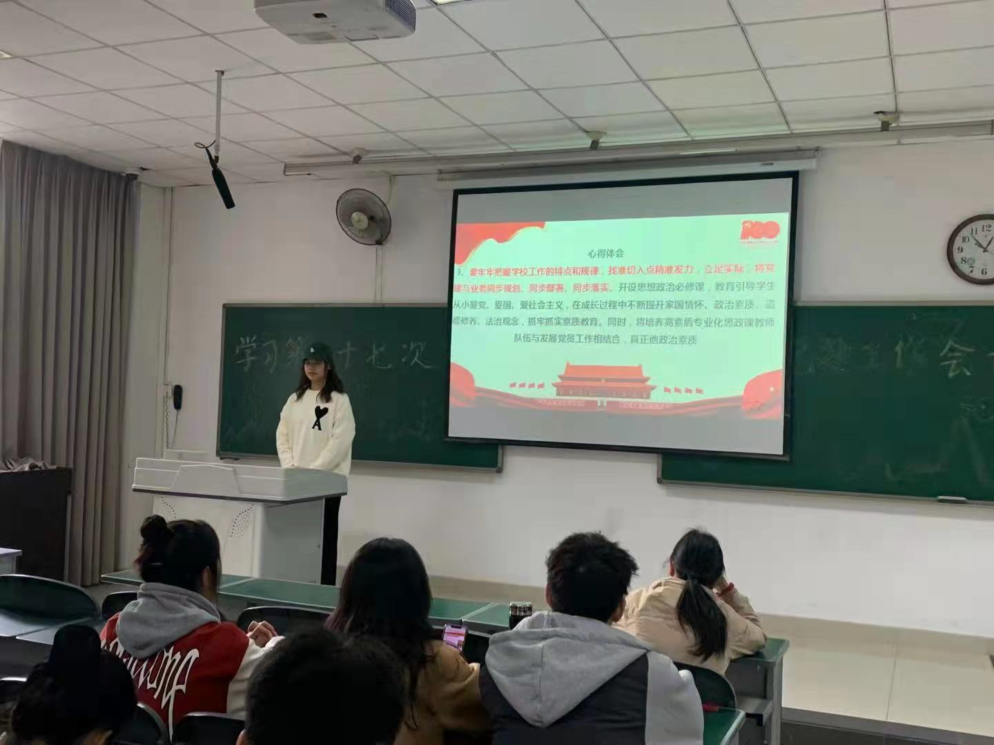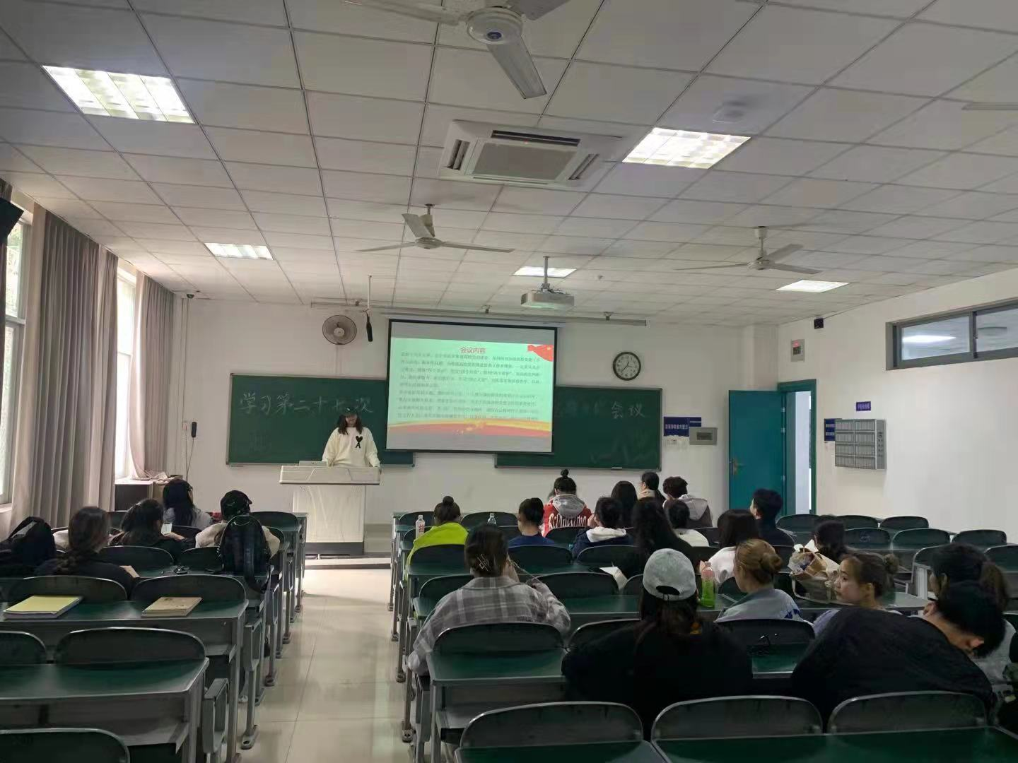 2021年10月18日中午12:30分,四川师范大学舞蹈学院2020级学生党支部在一教学楼a106开展了以“学习第二十七次全国高校党的建设工作会议精神专题学习”为主题的专题组织生活。2020级党支部书记李欢主持专题学习, 2020级23名入党积极分子参加。